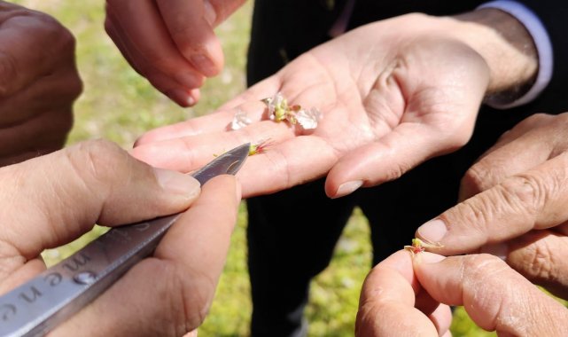Demirören Köyü'nde üretim yapan Sabri Aslan'a ait 24 dekar ve Yeşilkaraağaç Mahallesi'nde üretim yapan Sadık Akarca'ya ait 72 dekar meyve bahçelerinde gerçekleştirilen kontrollerde, mevsimsel hava şartlarının üretim üzerindeki etkileri değerlendirildi.