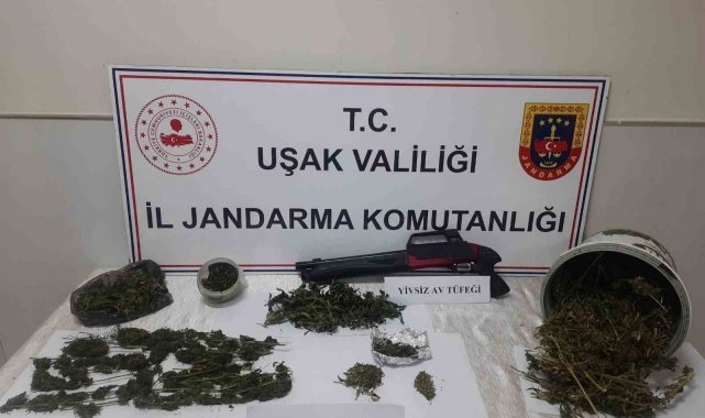 Edinilen bilgiler çerçevesinde, Uşak İl Jandarma Komutanlığı ekipleri Banaz ilçesinde M.A.S. (23) isimli şüphelinin ikametinde ve bağ evinde operasyon düzenledi. Operasyonda kapsamında yapılan aramalarda 828 gram kubar esrar, 1 adet ruhsatsız av tüfeği ve 1 adet uyuşturucu madde kullanma aparatı ele geçirildi.