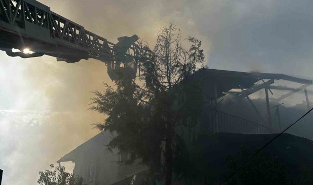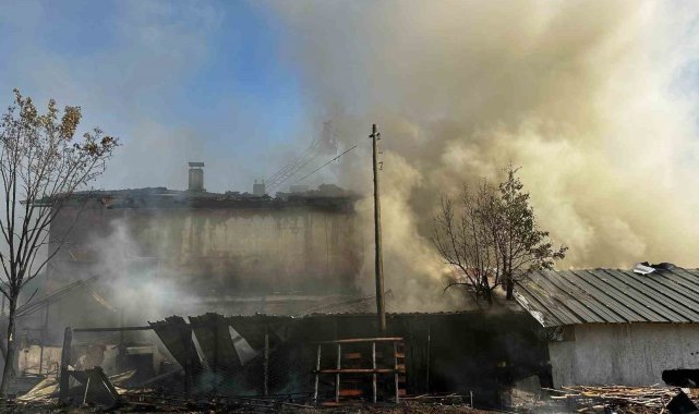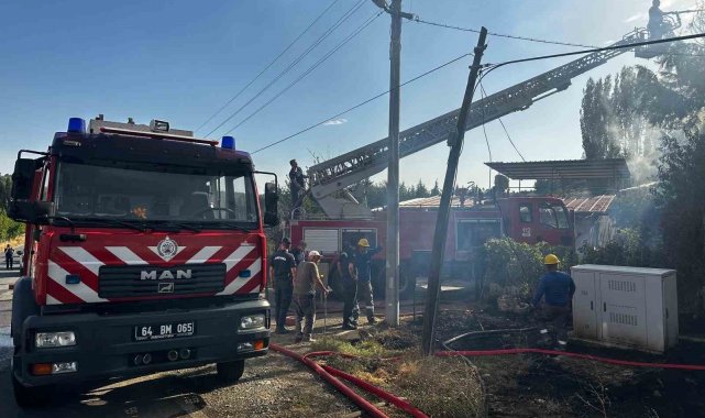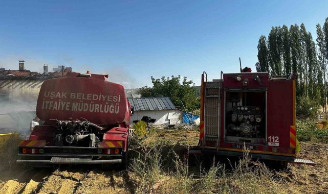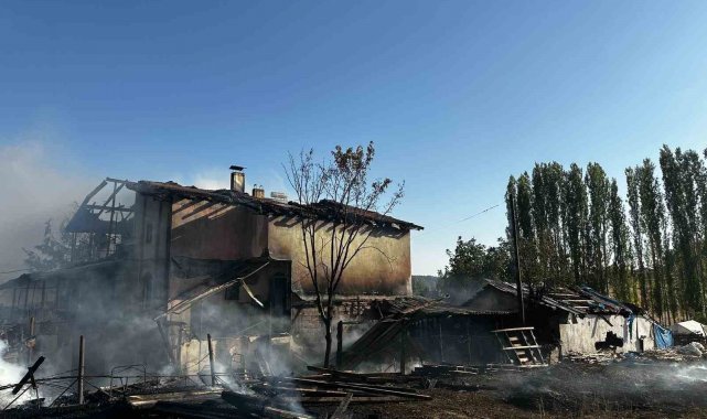Uşak'ta 2 katlı ev ve bir ahır çıkan yangında kullanılmaz hale geldi.