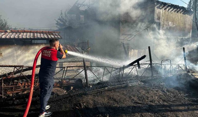 Uşak'ta 2 katlı ev ve ahır yangında küle döndü