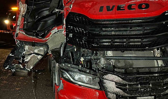 Uşak'ta 2 tırın çarpışması sonucu 1 sürücü yaralanarak hastaneye kaldırıldı.