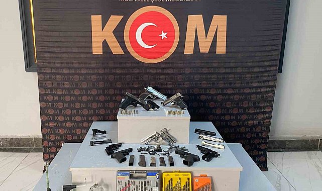 Uşak İl Emniyet Müdürlüğü'ne bağlı Kaçakçılık ve Organize Suçlarla Mücadele Şube Müdürlüğü ekipleri, edinilen bilgiler çerçevesinde bir adrese operasyon düzenledi. Operasyonda 4 adet ruhsatsız tabanca, 48 adet tabanca parçası, 5 adet tabanca gövdesi, 4 adet tabanca sürgüsü, 8 adet tabanca şarjörü, 24 adet fişek, 10 adet tabanca tamiratında kullanılan eye, 3 adet matkap, el mengenesi, deli aparatı ve 25 adet uyuşturucu aparatı ele geçirildi.