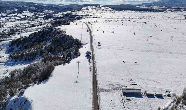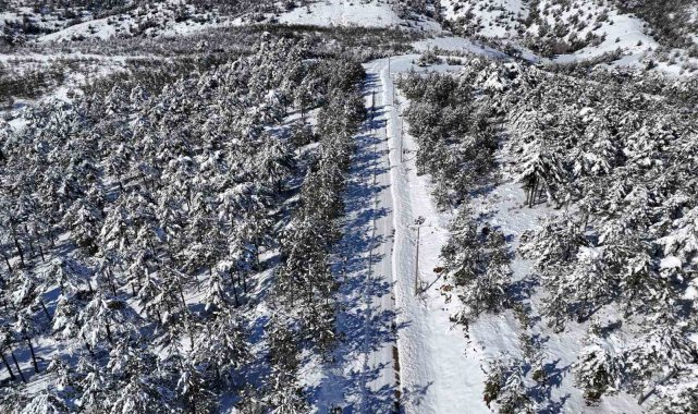 Kar yağışının ardından oluşan kartpostallık görüntüler dron ile havadan görüntülendi. Havadan kaydedilen görüntülerde, yüksek kesimlerin tamamen beyaza büründüğü ve ortaya çıkan doğal manzaranın dikkat çektiği görüldü.