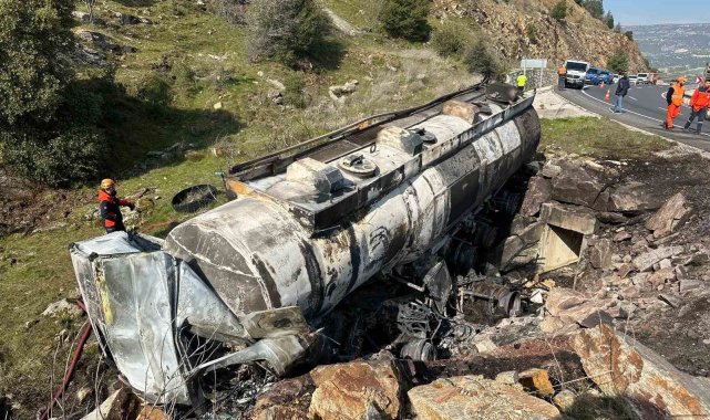 Uşak'ta mazot yüklü tanker alev alev yandı: 1 ölü