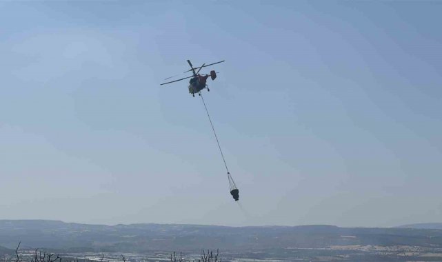 Uşak'ta tarım arazinde çıkan yangın makilik alana sıçradı. Söndürme çalışmaları devam ediyor.