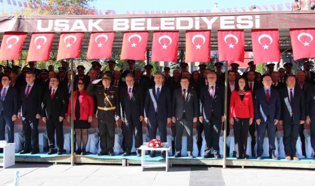 Törende konuşma yapan Uşak Valisi Naci Aktaş "Bizler; 2200 yıllık köklü bir devlet geleneğine sahip, imanla, alın teriyle ve vatan sevgisiyle yoğrulmuş; asırlar boyunca adaletle hükmetmiş, mazluma umut, zalime karşı siper olmuş bir milletin evlatlarıyız. İşte bu sarsılmaz inanç ve karakter, milletimizi her daim esarete karşı boyun eğmez kılmış; bağımsızlık aşkını ise nesilden nesile aktarılan bir değer hâline getirmiştir. Bu yüksek irade ve kararlılık; 19 Mayıs 1919'da Gazi Mustafa Kemal Paşa'nın Samsun'da yaktığı istiklâl meşalesiyle hayat bulmuş, milletimizin azmi, kahraman ordumuzun fedakârlığı ve iman dolu yüreğiyle zafere ulaşmıştır. Bu azim ve gayretle yürütülen mücadele, 29 Ekim 1923'te Cumhuriyetimizin ilanıyla taçlanmış ve milletimizin tarih sahnesinde yeniden şahlanışına vesile olmuştur." dedi.