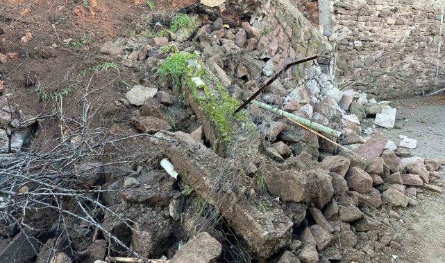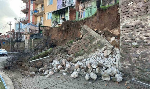Uşak'ta etkili olan yağışlar nedeniyle istinat duvarı çökmesi ve toprak kayması meydana gelirken, farklı mahallelerde toplam 3 ev tedbir amaçlı tahliye edildi.