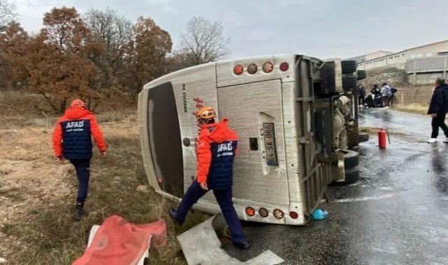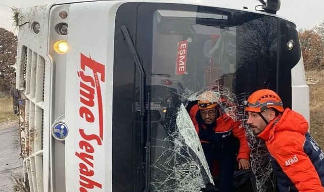 Uşak'ta yolcu taşıyan midibüsün yan yatması sonucu 5 yolcu yaralanarak hastaneye kaldırıldı.