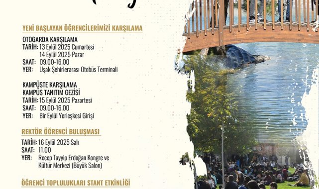 Uşak Üniversitesi Sağlık Kültür ve Spor Daire Başkanlığı tarafından düzenlenen program kapsamında 13-14 Eylül 2025 tarihlerinde Uşak Şehirlerarası Otogarında yeni öğrenciler için karşılama noktaları oluşturulacak. 15 Eylül 2025 tarihinde Bir Eylül Yerleşkesi girişinde kampüste karşılama ve kampüs tanıtım gezileri yapılacak.