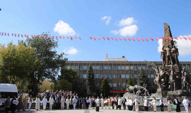 Uşak'ta bir grup kadın, Gazze'ye destek için 15 Temmuz Şehitler Meydanı'nda "Gazze İçin Sessiz Çığlık" etkinliği düzenledi.