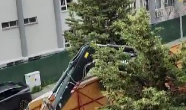 Üsküdar Belediyesi'nin ruhsat ve izin verdiği inşaat alanında bulunan yaklaşık 30 yıllık olduğu öne sürülen ağaçlar, iş makineleriyle kesildi.