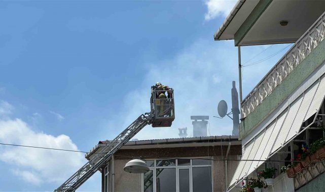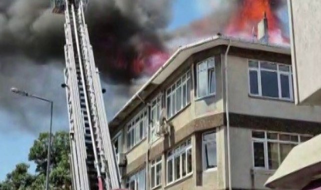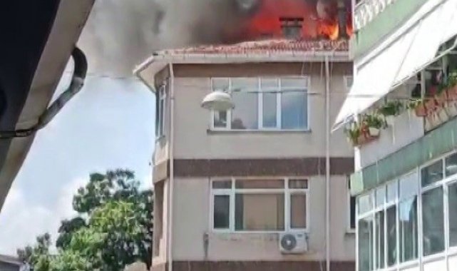 Üsküdar'da 3 katlı binanın çatısında yangın çıktı