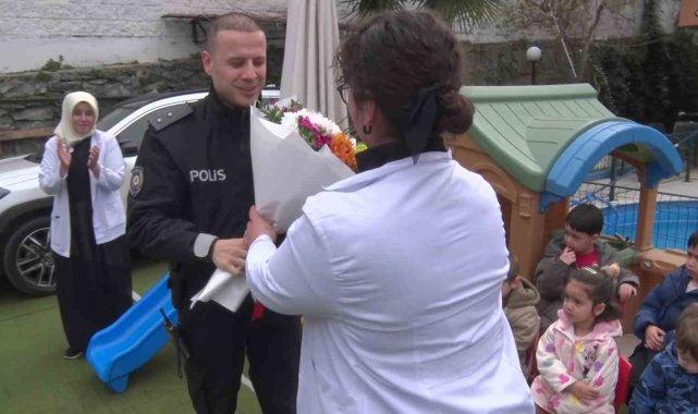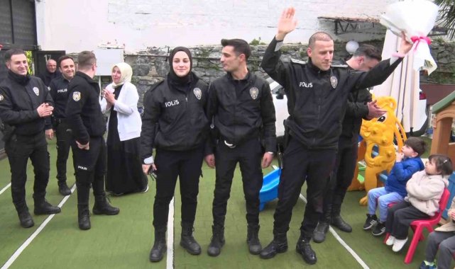 Üsküdar'da anaokulu öğrencilerinden polislere "Okulu bastılar" ihbarlı sürpriz kutlama