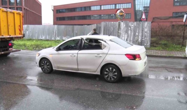 Üsküdar'da hafriyat kamyonunun açılan damper kapağı yayaya ve araçlara çarptı