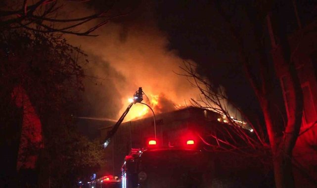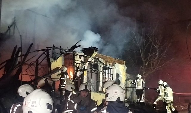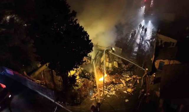 Üsküdar'da iki katlı metruk bina alev alev yandı