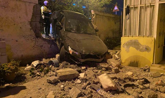 İstanbul Üsküdar'da bir otomobil, sürücünün direksiyon hakimiyetini kaybetmesi sonucu bir evin bahçesine uçtu. Kazanın ardından sürücü ile yanında bulunan şahıslar aracı terk ederek kaçtı.