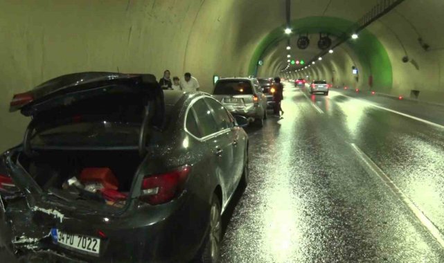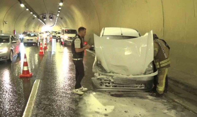 Üsküdar'da tünel içinde 4 aracın karıştığı zincirleme kazada bir araç yanarken, bir kişi hafif şekilde yaralandı.