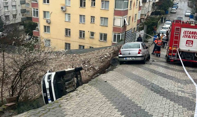 Üsküdar'da yoğun yağışların ardından yol çökmesi meydana geldi. Çökme esnasında yol üzerinde park halinde olan bir otomobil çukura düştü.
