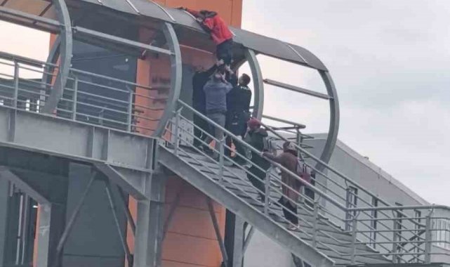 Bursa'nın İnegöl ilçesinde, eşinin ayrılmak istediği şahıs girdiği bunalım sonucu üst geçide çıktı. İkna çalışmalarını meraklı gözlerle izleyenler, adamın indirilmesini sağlayan polis ekiplerini alkışladılar.