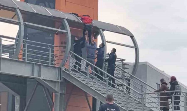 Edinilen bilgiye göre, olay İnegöl-Alanyurt yolu üst geçitte meydana geldi. Eşinin ayrılmak istediği iddia edilen Metin A. (42) bunalıma girdi. Şahıs üst geçit çatısına çıkıp kendini sarkıtarak intihar girişiminde bulundu. Olay yerine 112, polis ve itfaiye arama kurtarma ekipleri sevk edildi. Polis ekipleri şahsı yarım saat süren ikna çalışması sonucu çıktığı yerden indirdi. İkna çalışmalarını meraklı gözlerle izleyen öğrenciler, üst geçitten adamın indirilmesini sağlayan polis ekiplerini alkışladılar.