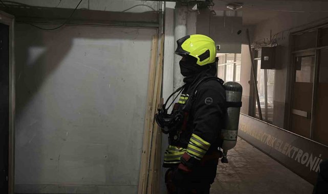 Üst katları otel olarak kullanılan iş merkezinde çıkan yangın ekipleri harekete geçirdi