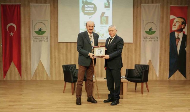 Programın sonunda Osmangazi Belediye Başkan Yardımcısı Mutlu Esendemir, günün anısına gazeteci Hüsnü Mahalli'ye hediye takdim etti.
