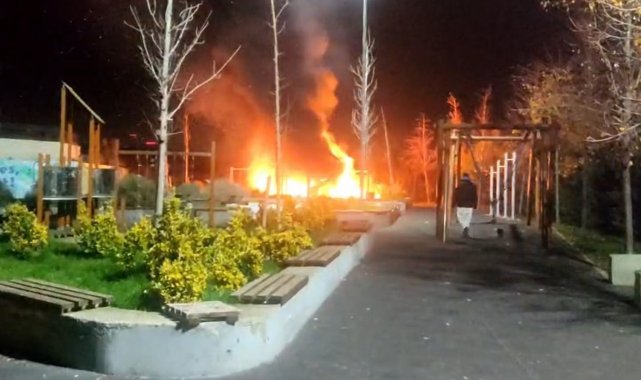 Üşümemek için ateş yaktılar, çocuk parkını küle çevirdiler