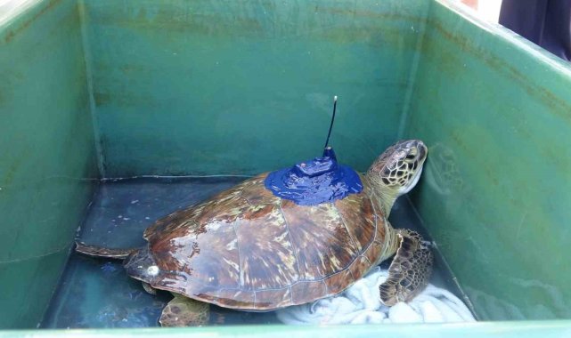 Uydu cihazı takılan kaplumbağa 'Atlas' denize bırakıldı