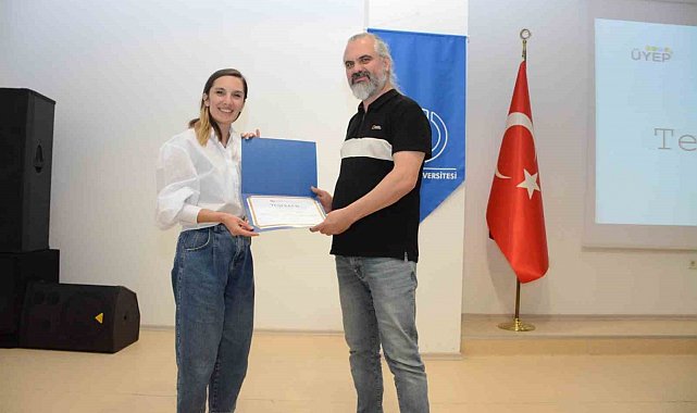 "Üstün Yeteneklilerin Eğitimine Yönelik Uygulamalar: ÜYEP Modeli" semineri, ÜYEP Müdür Yardımcısı Doç. Dr. Bilge Bal Sezerel'in ÜYEP Müdürü Prof. Dr. Fatih Karabacak'a teşekkür belgesi takdim etmesiyle sona erdi.