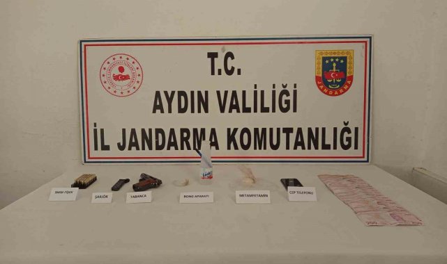 Aydın'da jandarma ekipleri vatandaşların huzur ve güvenliği için çalışmalarını aralıksız sürdürüyor. Edinilen bilgiye göre, Didim İlçe Jandarma Komutanlığı tarafından uyuşturucu madde satıcısı ve kullanıcısına yönelik çalışmada; Akyeniköy Mahallesi'nde T.Y. isimli şüpheli uyuşturucu madde kullandığı esnada suçüstü yakaladı. Şüphelinin üzerinde ve aracında yapılan aramada; 41 gram metamfetamin, 1 adet uyuşturucu kullanma aparatı, 1 adet ruhsatsız tabanca ve şarjörü, 42 adet fişek, 1 adet cep telefonu, 2 bin 854 TL suçtan elde edildiği değerlendirilen nakit para ele geçirildi. Gözaltına alınan şüpheli jandarmadaki işlemlerinin ardından sevk edildiği adliyede çıkartıldığı adli makamlarca tutuklanarak cezaevine gönderildi.