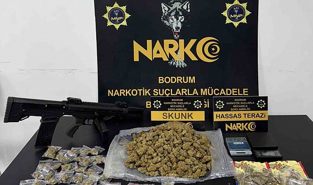 Bodrum Narkotik Suçlarla Mücadele Büro Amirliği ekipleri tarafından uyuşturucu tacirlerine yönelik operasyon yapıldı. Edinilen bilgiye göre operasyon kapsamında yapılan ikamet aramasında, 1 kilo 118 gram skunk maddesi, 1 adet belgesiz yivsiz av tüfeği, 2 adet hassas terazi ve bin dolar suçtan elde edildiği değerlendirilen para ele geçirildi. Yakalanarak gözaltına alınan 3 şüpheli şahısda, işlemlerinin ardından sevk edildiği adli makamlarca tutuklanarak cezaevine gönderildi.