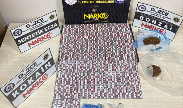 Düzce Cumhuriyet Başsavcılığının koordinesinde Narkotik Suçlarla Mücadele Şube Müdürlüğü ve Asayiş Şube Müdürlüğünce Burhaniye Mahallesi'nde 4 şahsa yönelik operasyon düzenlendi. Düzenlenen operasyonda; iki parça halinde 6 gram sentetik kannabinoid ham maddesi (600 gram sentetik kannabinoid elde edilebilecek ham madde), bin 566 adet sentetik ecza, 1 gram kokain maddesi, iki parça halinde 65 gram sentetik kannabinoid maddeleri ele geçirildi.