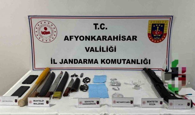 Afyonkarahisar'da Jandarma tarafından gerçekleştirilen operasyonda yaklaşık 6 bin kullanımlık uyuşturucu madde, silah ve bıçaklarla yakalanan 6 kişi tutuklandı.