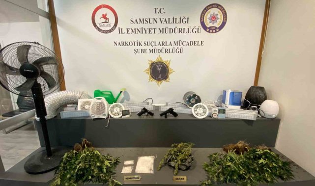 Samsun'da polis tarafından düzenlenen uyuşturucu operasyonunda evde özel iklimlendirme sistemiyle kenevir yetiştirme odası ele geçirildi.