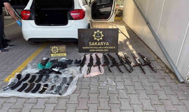 Sakarya İl Emniyet Müdürlüğü ekipleri, şehirde mevcut huzur ve güven ortamının devamının sağlanması için operasyonlarına hız kesmeden devam ediyor. Uyuşturucu madde ticareti ve kullanımının engellenmesine yönelik yapılan analiz çalışmaları çerçevesinde Sakarya Cumhuriyet Başsavcılığının koordinesinde Diyarbakır'dan, İstanbul'a hareket eden ve uyuşturucu madde taşıdığı değerlendirilen kiralık otomobil, Sakarya İl Emniyet Müdürlüğü ekiplerince takibe alındı. Anadolu Otoyolu üzerinde gerçekleştirilen operasyon neticesinde otomobil durduruldu. Otomobil sürücüsünün Diyarbakır Emniyet Müdürlüğü'nde görev yapan polis memuru M.A.K. olduğu tespit edildi. Araç içerisinde yapılan aramalarda ise 9 adet AK-47 kalaşnikof tüfek, 17 adet kalaşnikof şarjörü, 5 adet ruhsatsız tabanca, 8 adet tabanca şarjörü, 45 adet kalaşnikof mermisi ve 32 adette tabanca mermisi ele geçirildi. Şahsın gözaltına alındığı operasyona ilişkin görüntüler de ortaya çıktı.