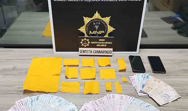 Alınan bilgiye göre, Anamur Cumhuriyet Başsavcılığı koordinesinde İlçe Emniyet Müdürlüğü Narkotik Suçlarla Mücadele Büro Amirliği ekipleri uyuşturucu ile mücadele kapsamında çalışma yaptı. Yapılan çalışmada şüpheliler H.Ç.Ç. ve A.O. belirlenerek yakalandı. Şüphelilerin üzerinde yapılan aramada sentetik uyuşturucu emdirilen kâğıt parçaları ele geçirildi. 2 şüpheli hakkında uyuşturucu madde kullanmaktan işlem yapılırken polis çalışmasını sürdürdü. Çalışmada şüphelilerin uyuşturucu maddeyi Serhat Ş.'den aldığı belirlenerek adresine operasyon yapıldı. Operasyonda Serhat Ş. ve S.Ş. yakalanarak gözaltına alındı. Şüphelilerin adreslerinde yapılan aramada farklı ebatlarda 13 parça sentetik kannabinoid emdirilmiş turuncu renkli kâğıt, uyuşturucu ticaretinden elde edildiği değerlendirilen 19 bin 815 TL ele geçirildi.