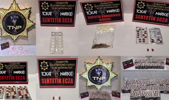 Tokat İl Emniyet Müdürlüğü Narkotik Suçlarla Mücadele Şube Müdürlüğü ekiplerince düzenlenen planlı operasyonda 18 şüpheli gözaltına alındı. Operasyonda, 10 bin 301 adet sentetik ecza hap, 158.5 gram sentetik kannabinoid (bonzai), 5.41 gram metamfetamin ve 110 içimlik peçeteye emdirilmiş bonzai ele geçirildi. Uyuşturucu maddelerin bir kısmı koltuk altına, çanta ve kıyafetlerin içine gizlenmiş şekilde bulundu. Ekiplerin dikkatinden kaçmayan bir başka zula ise bir patiğin içine saklanmış bonzai oldu. Emniyetteki işlemleri tamamlanarak Adliyeye sevk edilen şüphelilerden 5'i tutuklanırken, 3'ü hakkında adli kontrol kararı verildi.