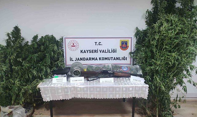 Edinilen bilgiye göre, Kayseri İl Jandarma Komutanlığı ekipleri tarafından kentte uyuşturucu ve uyarıcı madde ticareti ile kullanımının önlenmesine yönelik çalışma yapıldı. Ekipler tarafından yürütülen çalışmalarda; H.O. yakalanırken, şahsa ait Kocasinan İlçesi Yazır Mahallesi'ndeki ikamete yapılan aramalarda; turşu bidonuna gizlenmiş 3 kilo 210 gram kubar esrar, 16 kök kenevir bitkisi, 1 ruhsatsız av tüfeği ve 1 hassas terazi ele geçirdi.