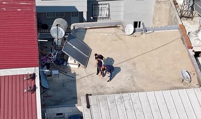 Yapılan titiz çalışmalar sonucunda, şahsın Akdeniz ilçesinde bir adreste bulunduğu tespit edildi. Adrese düzenlenen operasyonda İ.A., ikametinin çatı kısmından çok miktarda esrar maddesini havalandırma boşluğu ve tuvalet giderine atarak kaçmaya çalıştı. Ancak polis ekiplerinin havadan dron ile yaptığı takip sonucu şüpheli kıskıvrak yakalandı.