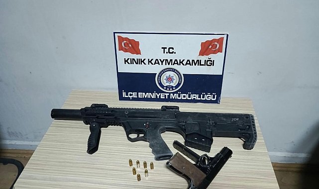 Kınık İlçe Emniyet Müdürlüğü 5 Kasım günü saat 16.40 sıralarında Fatih Mahallesi Atatürk Caddesi'nde şüphe üzerine bir kişiyi durdurdu. B.Y. adlı şahsın üzerinde 6 adet tabanca fişeği bulundu. Durumun bildirilmesi üzerine ekipler, şüpheliye ait ev adresinde arama yaptı. Evde yapılan aramada ruhsatsız tabanca, şarjöründe basılı halde 7 adet mermi ve ibaresiz ruhsatsız otomatik tüfek ele geçirildi.