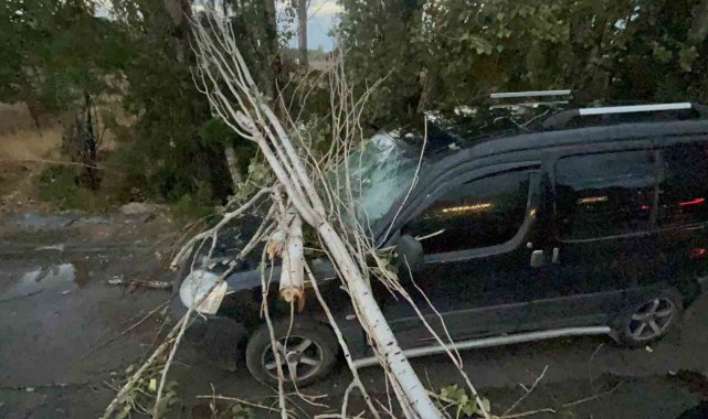 Üzerine ağaç dalı düşen araç kullanılamaz hale geldi