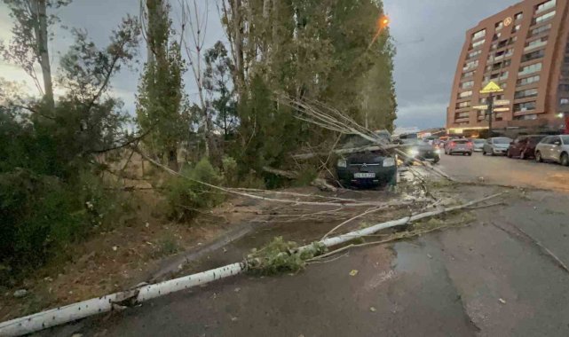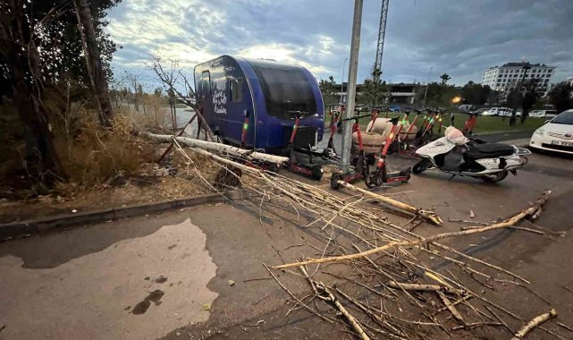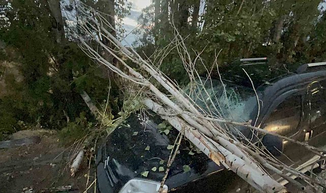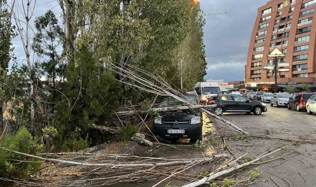 Eskişehir'de rüzgarın etkisiyle kırılan ağaç dalları park halindeki bir aracın üzerine düşerek maddi hasar oluşturdu.