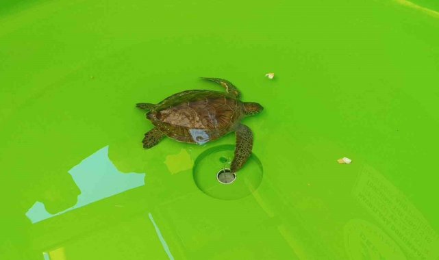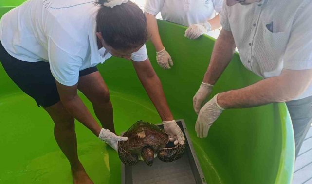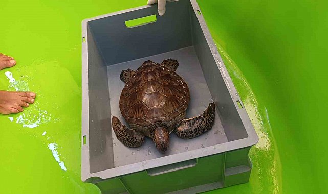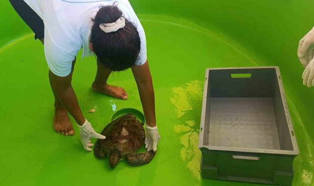 Üzerine file ve çuval dolanıp lenfleri zarar gören Yeşil Deniz Kaplumbağası kurtarıldı