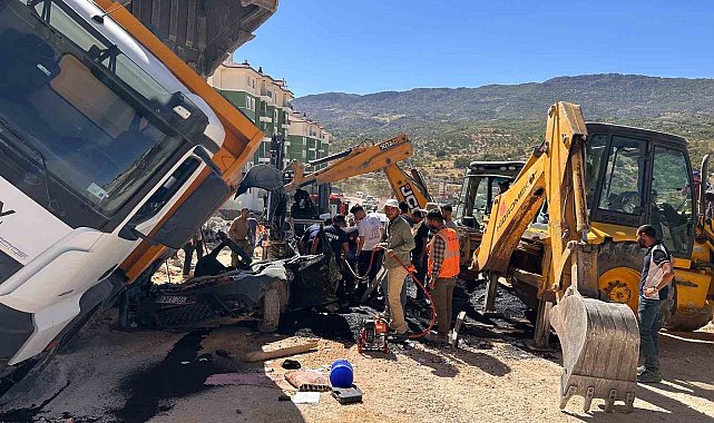 Adıyaman'ın Gölbaşı ilçesinde üzerine kamyon devrilen otomobilin sürücüsü hayatını kaybetti.