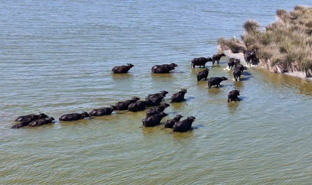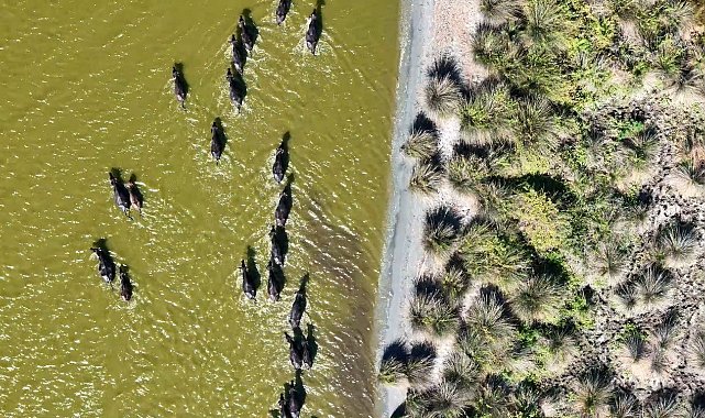 Manda popülasyonunda Türkiye'de ilk sırada yer alan Samsun'da, Kızılırmak Deltası'nda mandalar havadan görüntülendi. Serengeti'yi andıran görüntüler ortaya çıktı.