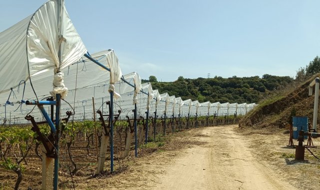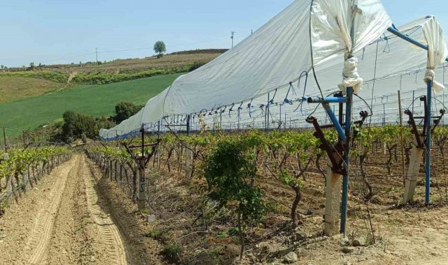 Üzüm bağlarına İtalyan dolu tül sistemi uygulaması başlandı