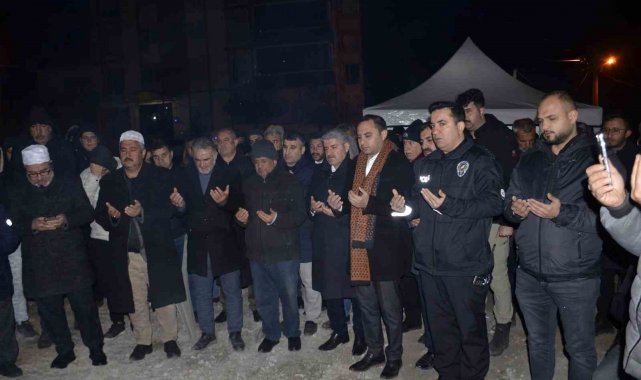 Besni Üzümkent Sitesi'nin yıkılan binalarında yakınlarını kaybeden vatandaşlar, anma töreni düzenledi.