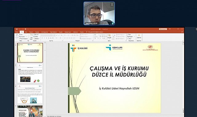 Düzce Üniversitesi Kariyer Geliştirme ve Mezun İzleme Uygulama Araştırma Merkezi tarafından öğrenciler ve mezunların kariyer planlamalarını bilinçli bir şekilde yapmalarını desteklemek amacıyla düzenlenen "Kariyer Haritanı Çiz: Hedeflerini Belirle ve Geleceğini Şekillendir" başlıklı seminer çevrim içi olarak gerçekleştirildi.