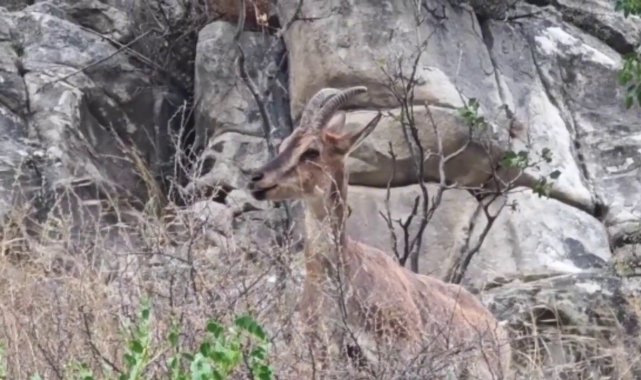 İlçenin dağlık bölgelerinde otlanan keçiler, dere kenarına inerek su içti. Zaman zaman şehre yakın noktalara kadar gelen dağ keçileri, vatandaşların ilgisini çekti.