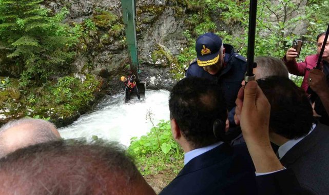 İncelemenin ardından açıklamalarda bulunan Vali Aziz Yıldırım, umutsuz olmak istemediğini belirterek "Her şeyden önce umudumuzu muhafaza etmeye gayret ediyoruz. Pazartesi günü elim bir kaza yaşanmış. Türkiye'yi, Trabzon'u ve Uzungöl'ü gezmeye gelen Suudi Arabistan vatandaşı bir aile buraya kadar geliyorlar. Suya ellerini sokmak istiyorlar ya da su almak istiyorlar. Çok coşkun bir dere. 8 yaşındaki bir erkek çocuğu ile birlikte baba bu faaliyeti yapmak istiyor. Suyun coşkun akışı bunları içine çekiyor. Baba 75 metre aşağıda kendi gayretleri ile çıkabiliyor. Çocuğun aynı gayreti göstermesi mümkün değil ve su alıp götürüyor. Haberimiz olduğu andan itibaren bütün arkadaşları buraya yığdık. İlk gün 96 kişi ile buralarda arama yaptık. İkinci gün aynı şekilde çalışma yaptık. Üçüncü gün 103 kişi ile arama yaptık. Dördüncü gün 90 kişi bugün de ayın rakamla aramalar yapıyoruz. Bunları sadece gözle yapmıyoruz. DSİ'den araçları aldık, onlarla yapıyoruz. SAT komandolarımız, polis ve jandarma dalgıçlarımız var. Kepçenin kovasına binmek suretiyle bile şüphelenilen, olabileceği umudu taşınılan yerlere kadar erişmeye gayret ediyorlar. Bu derelerin en coşkun aktığı zaman. Öyle olunca çalışmalarımız zorlaşıyor. Suyu nerelere götürdüğünü veya suyun o yavrucağı nerelere bırakabileceğini bizde kestiremiyoruz. Elimizden gelen her santimetrekaresi türlü türlü araç gereç ve imkanla aranıyor. Aile çalışmaları takip ediyor. Ümidimiz yavrucağı bulabilmektir. Kendi evladımızı arıyor şeklinde arıyoruz bundan herkes emin olabilir. Umudumuz bitene kadar çalışmalar sürecek. Çalışmaları devam ettirmeye gayret ediyoruz. Bugün, yarın artık yeter demiyoruz. Şuanda bir sınır koymadık" dedi.